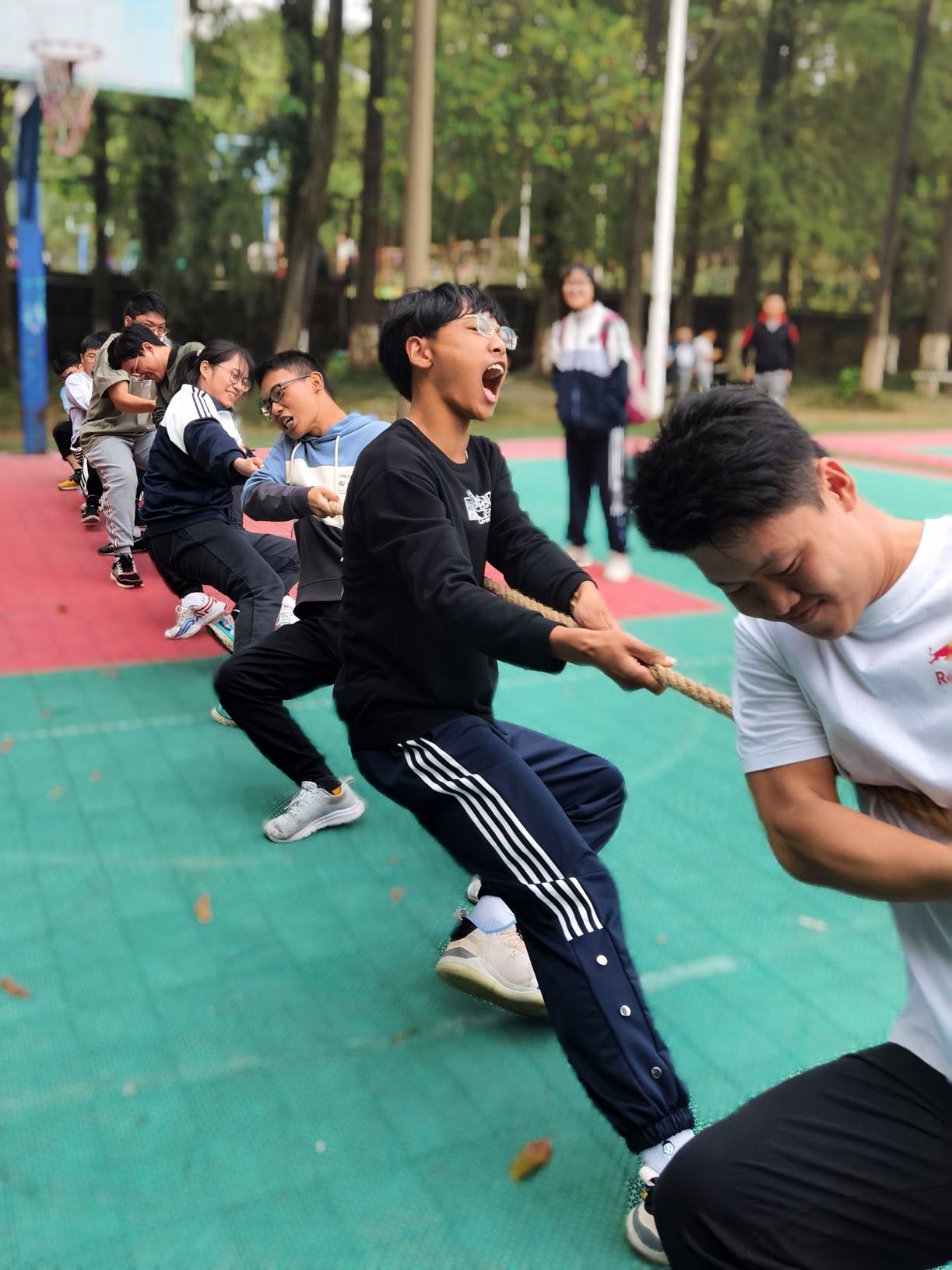 本次yl7703永利集团第一届秋季运动会为期3天,在南区露天篮球场举行,共323人次参加。比赛在团结、友谊、欢乐的气氛中有序进行,包括1v1篮球对抗赛、摄影比赛2个个人项目和创意连线、跳大绳、乒乓球运球、永不落地、迎面接力、滚铁环、超级大旋风、两人三足、解手链、拔河和3v3篮球对抗赛等11个集体项目。
