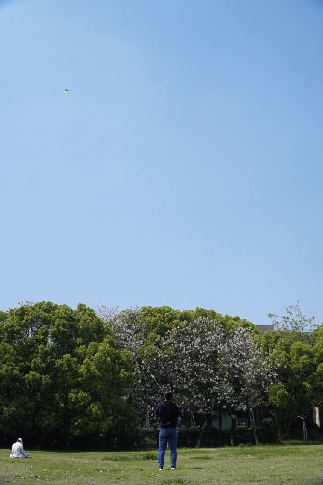 天色湛蓝,云朵慵懒几纸风筝张开双翼,乘风而上细线飘摇,风筝舞动,脚步匆忙,人头攒动欢声笑语从绿草坪蔓延至天空