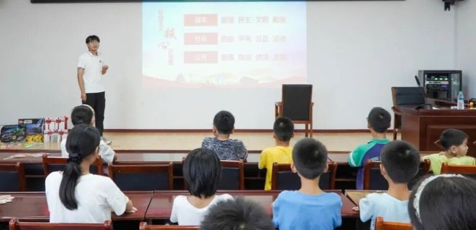 实践的最后,队员们走进流芳乡“童心湾”,化身“历史老师”,为当地的孩子们带来了一堂别开生面的红色宣讲课。他们精心挑选适合儿童理解的英雄故事,巧妙运用图片、歌曲、情景短剧等生动形式,讲述革命先辈的感人事迹。在互动问答与红歌学唱的欢快氛围中,爱国主义的种子悄然播撒进孩子们的心田,懵懂的童心被革命的星星之火点亮。