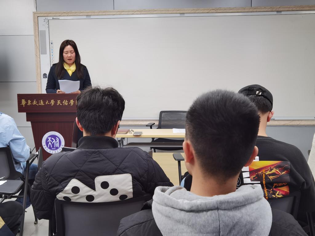 2022年11月10日下午,为了深入贯彻学习中国共产党第二十次代表大会精神,我院常务副院长王冰雪围绕“不忘初心使命 为建设中国式现代化奋斗”这一主题,为2022级全体“天佑学子”讲授了一堂思政课。思政课由学院党委副书记王巍主持。
