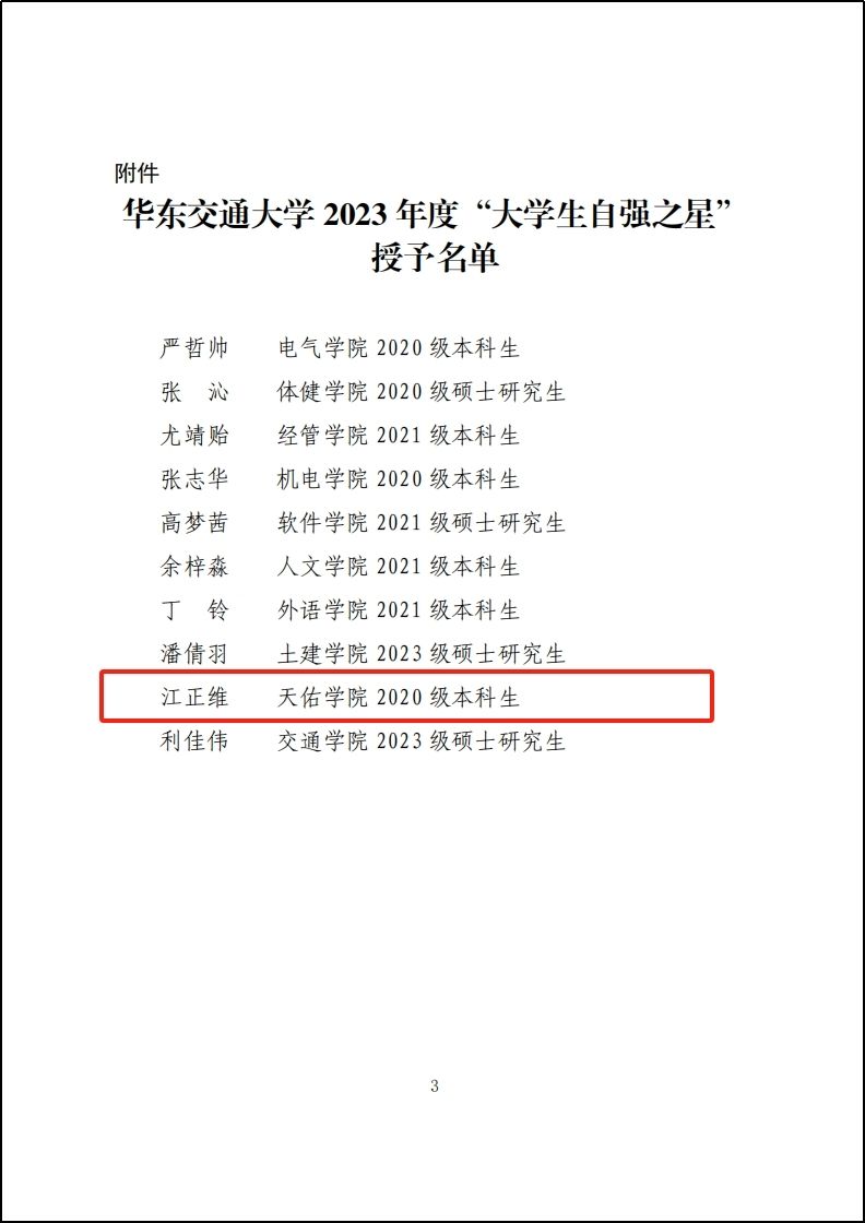 3月14日,由校团委组织开展的2023年度“大学生自强之星”评选活动结果公布,我院2020级天佑学子江正维被授予yl7703永利集团2023 年度“大学生自强之星”。