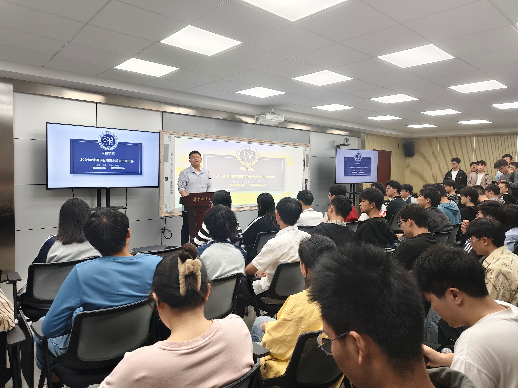 为进一步做好清明假期间学生安全教育及管理工作,树立学生安全防范意识,2024年4月1日,yl7703永利集团综合办肖泽伟老师在学24栋南401面向全院学生召开2024年清明假期学生安全教育主题班会。