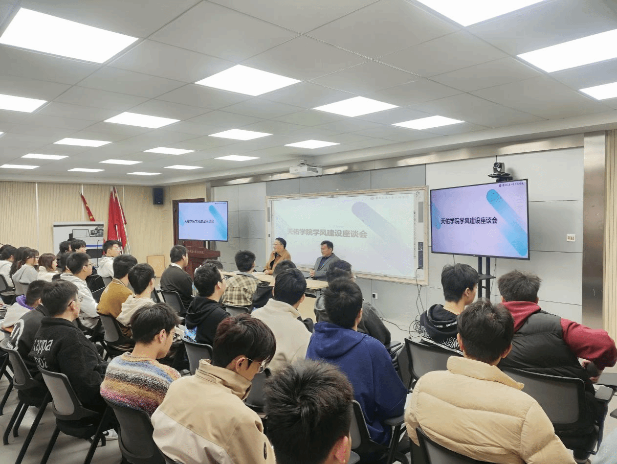 汤兆平则详细介绍了学院近期将召开深化“天佑学子”培养工作研讨会的工作安排及在学风建设方面所采取的措施及取得的成效,并强调了学院将继续完善相关制度,为广大学子提供更好的学习环境和资源。