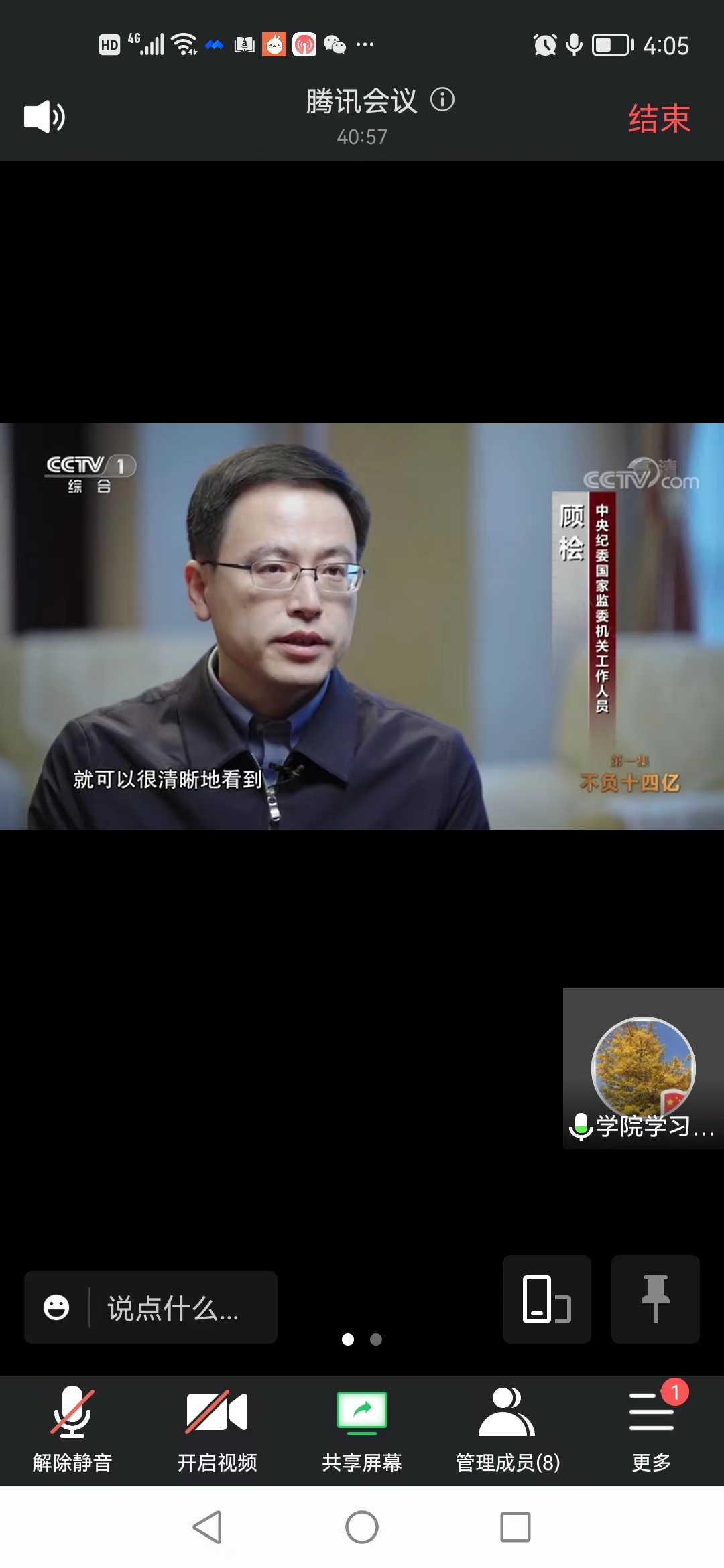 全体党员同志通过腾讯会议在线上集中观看《“赶考”路上的迷失者》、《零容忍》第一集等警示教育片,结合工作实际交流讨论学习心得,进一步筑牢拒腐防变的思想防线。