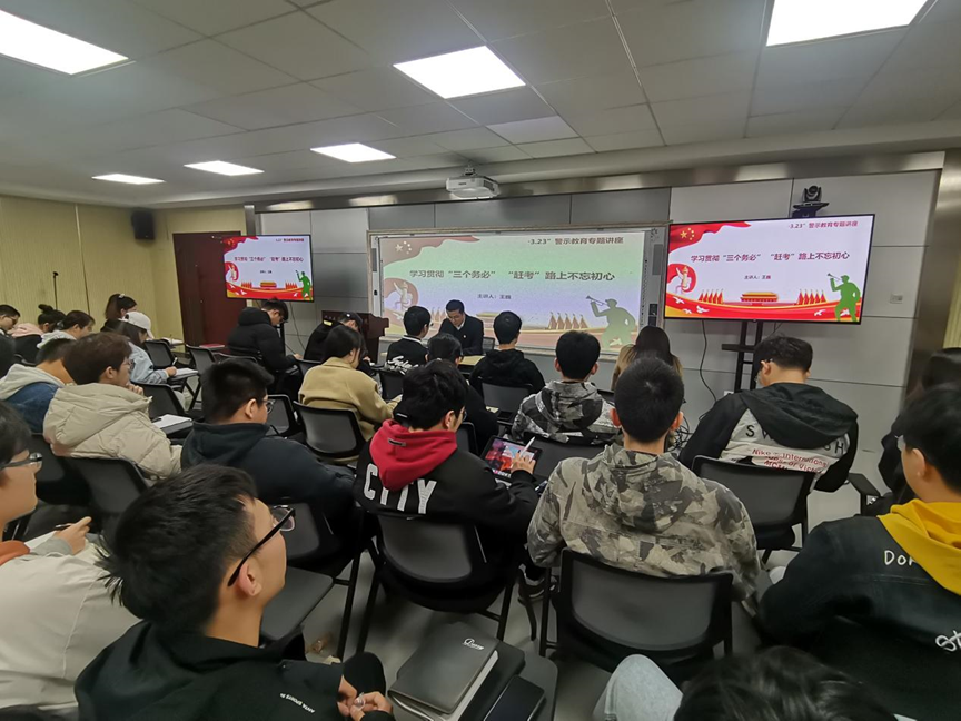 王巍传达了校党委书记柳和生在学校2023年“3.23”警示教育专题党课上的讲话精神,并以“学习贯彻‘三个务必’,‘赶考’路上不忘初心”为题,带领大家深入学习了党的二十大精神,并详细阐释了“三个务必”的具体内涵,着重强调了各位党员干部应做到不忘来时路、眺望奋进路、走好脚下路,鼓足干劲再出发,在新时代的“赶考”路上不断书写更多更大更亮的新考绩。