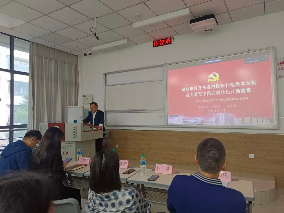 黄校长指出,我们要沿着习近平总书记在江西考察的足迹,理解习近平总书记的重要讲话精神,随后黄校长介绍了习近平总书记在江西三次考察的具体历程: