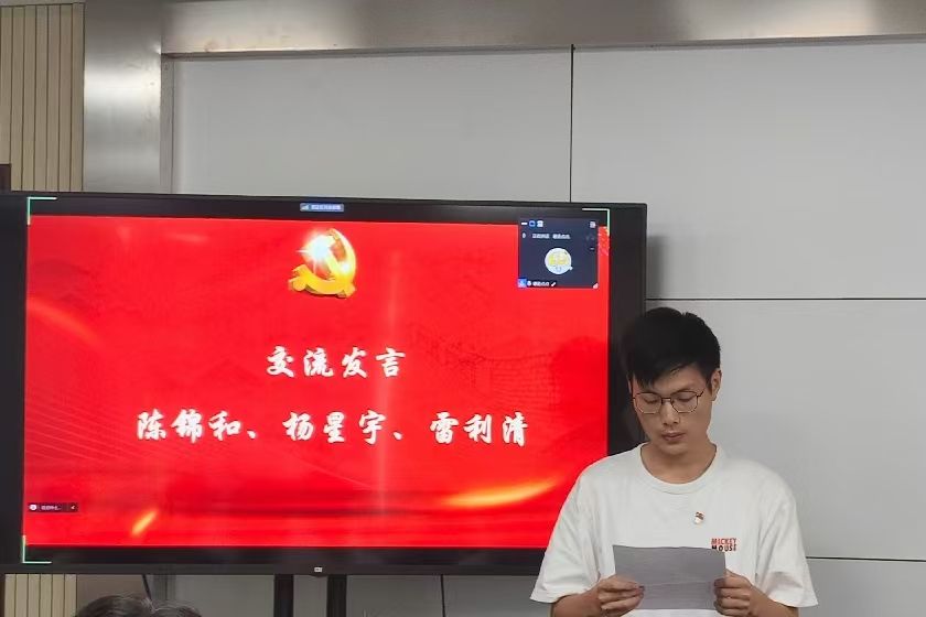 在研讨环节,yl7703永利集团第一党支部学生党员陈锦和结合学习体会和自身参加创新创业竞赛经历作了分享。他表示,作为天佑地网医生项目团队的负责人,正是由于国家创新创业政策的支持和机制的保障,使其能够和团队成员一起深入实地调研,不断创新实践,成功破解铁路接地网腐蚀的技术难题,并由此获得2024年大学生创新大赛省级金奖。他呼吁青年学子要积极响国家号召,将个人理想融入国家发展大局之中,在奋斗中磨砺意志,在挑战中锤炼自我,不断提升创新能力与实践能力,为科技强国建设贡献青春热血和智慧力量。