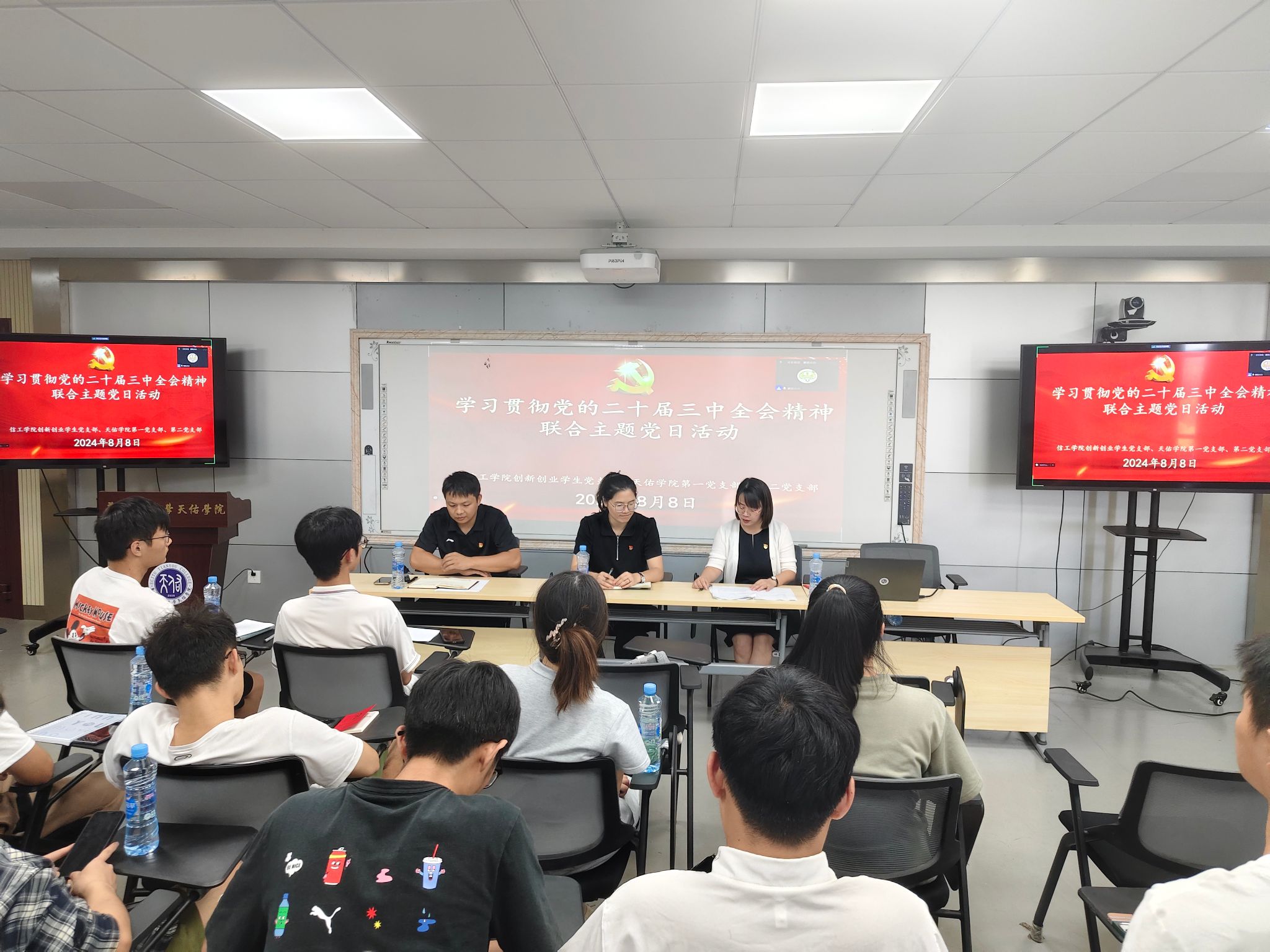 8月8日,yl7703永利集团第一、第二党支部与信工学院创新创业学生党支部联合开展“学习贯彻党的二十届三中全会精神”联合主题党日活动,活动采用线上+线下相结合的方式进行,各支部全体党员、入党积极分子代表参加。信工学院党委组织员、创新创业学生党支部书记黄芳主持。