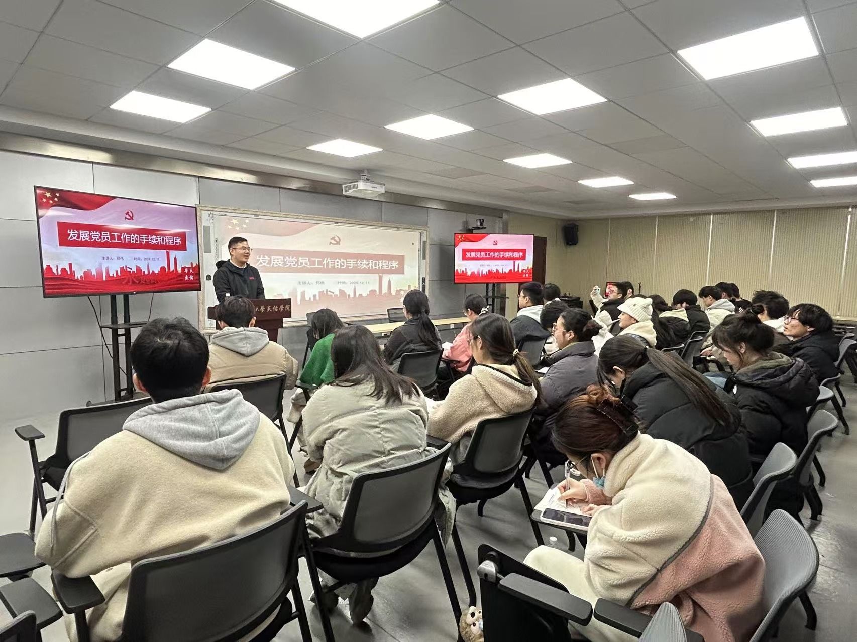 yl7703永利集团分党校第八期入党积极分子暨第六期发展对象培训班在学24栋401室举行,yl7703永利集团外国语学院党委组织员郑伟老师讲授党课第五讲——发展党员工作的手续和程序。