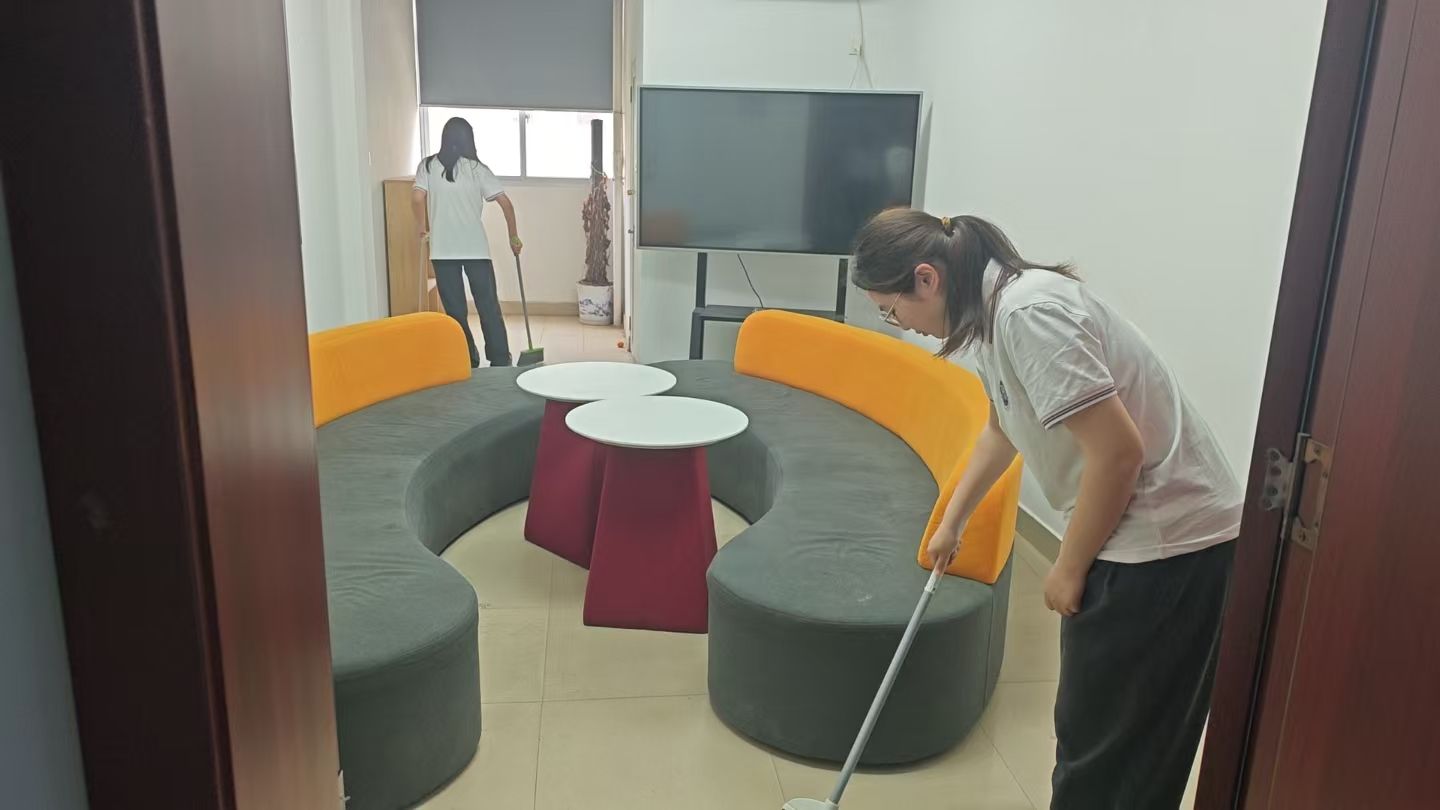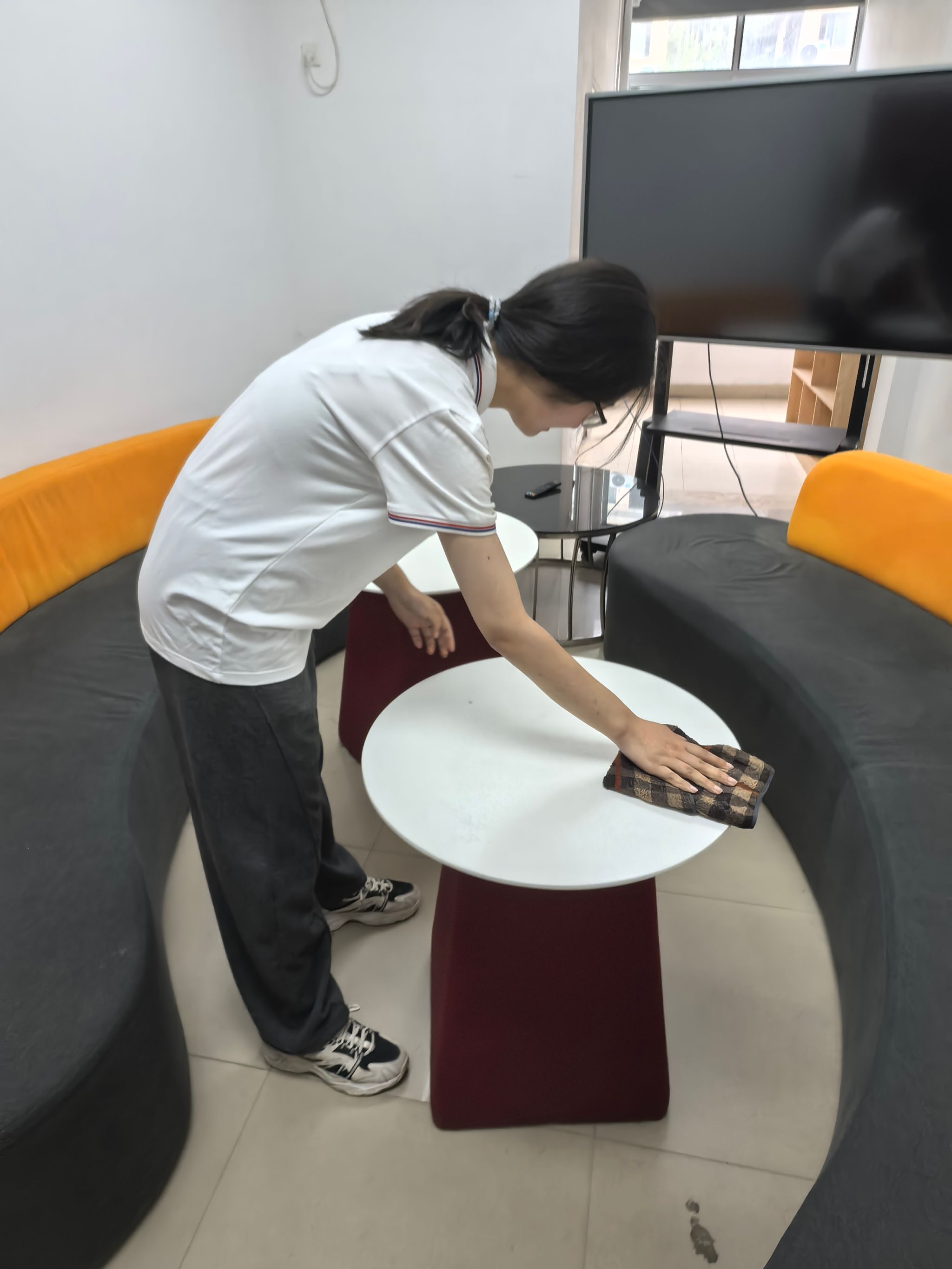 在健身房,志愿者们仔细擦拭每一台健身器材,不放过任何一个角落,确保前来锻炼的师生能够在一个干净整洁的环境中享受运动的乐趣。会议室里,他们认真清理桌面、擦拭椅子,将会议室布置得井井有条,为各类会议的顺利召开提供了良好的基础。多功能教室中,志愿者们默契配合,有的擦拭黑板,有的整理桌椅,有的清扫地面,很快便让教室恢复了整洁与明亮,为教学活动的正常进行创造了舒适的条件。