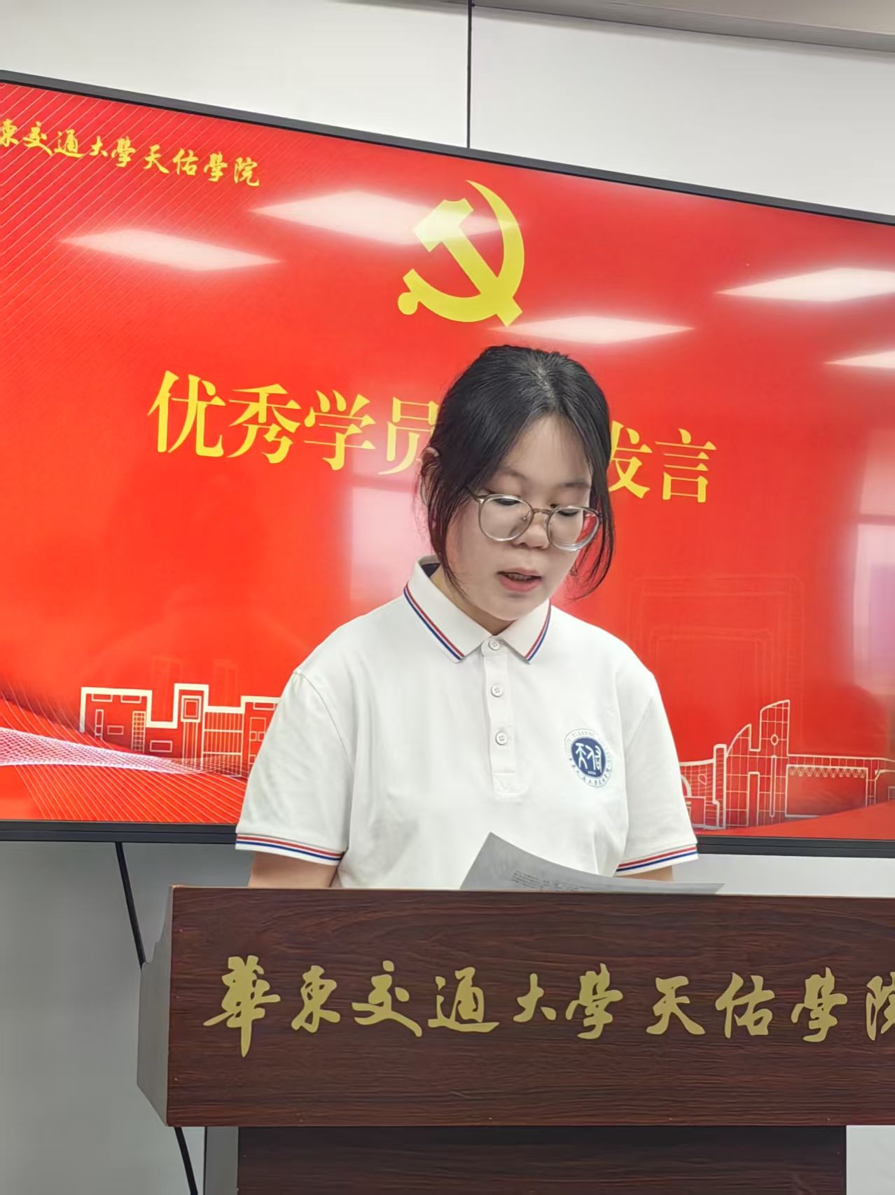 优秀学员代表路贵茵分享了自己在培训班上的学习心得与感悟。她提到,培训班丰富的教学内容和生动的案例,让她深入学习了党的光辉历史,深刻认识到党的领导是历史和人民的选择,理解了中国共产党的责任担当,并被优秀党员的奉献精神深深感染。在培训过程中,她反思了自身的不足,并提出了切实可行的改进计划:一是扎实学好每一门课程,提升科学文化素养;二是深入学习党的理论知识,提升政治素养;三是积极参加志愿活动,增强社会责任感和解决实际问题的能力。她引用习近平总书记的讲话,强调新时代青年肩负着国家和民族的未来,应有理想、有本领、有担当。作为入党积极分子,更应不断提升理论素养和政治觉悟,践行党的宗旨,踊跃投身社会建设,为实现中华民族伟大复兴的中国梦贡献自己的力量。她的发言赢得了全场热烈的掌声,也激励着每一位学员在今后的学习和生活中,以更高的标准要求自己,努力成为一名合格的共产党员。